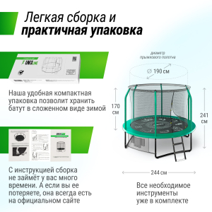 UNIX FIT TRUSUG8GR UNIX line Премиальный с играми / SUPREME GAME 8 ft Батут зеленый
