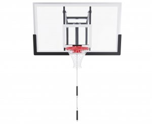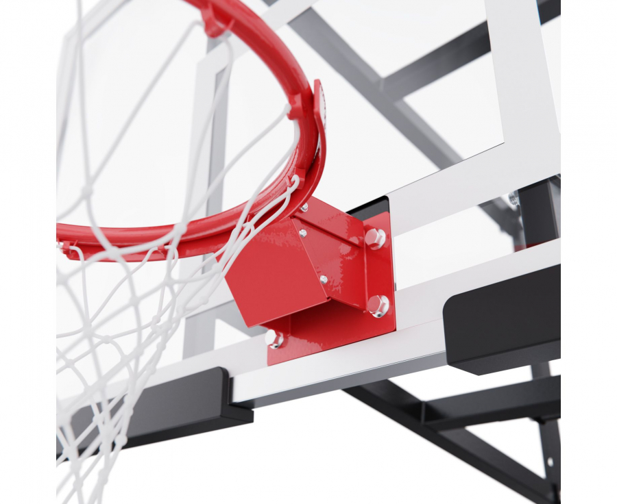 Щит изготовлен из прочного поликарбоната толщиной 3 мм — материала, обеспечивающего хороший отскок мяча и устойчивость к ударам. Его размеры — 136 х 80 см, что делает его максимально приближенным к профессиональному оборудованию. Регулируемый вынос щита (51–55,5 см) повышает безопасность и удобство во время игры. Дополнительную безопасность обеспечивает защита Poly Pade, установленная по нижнему краю щита.