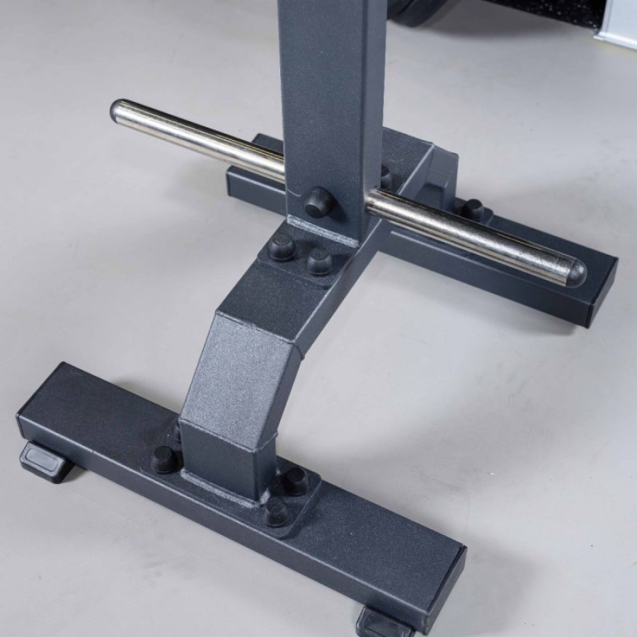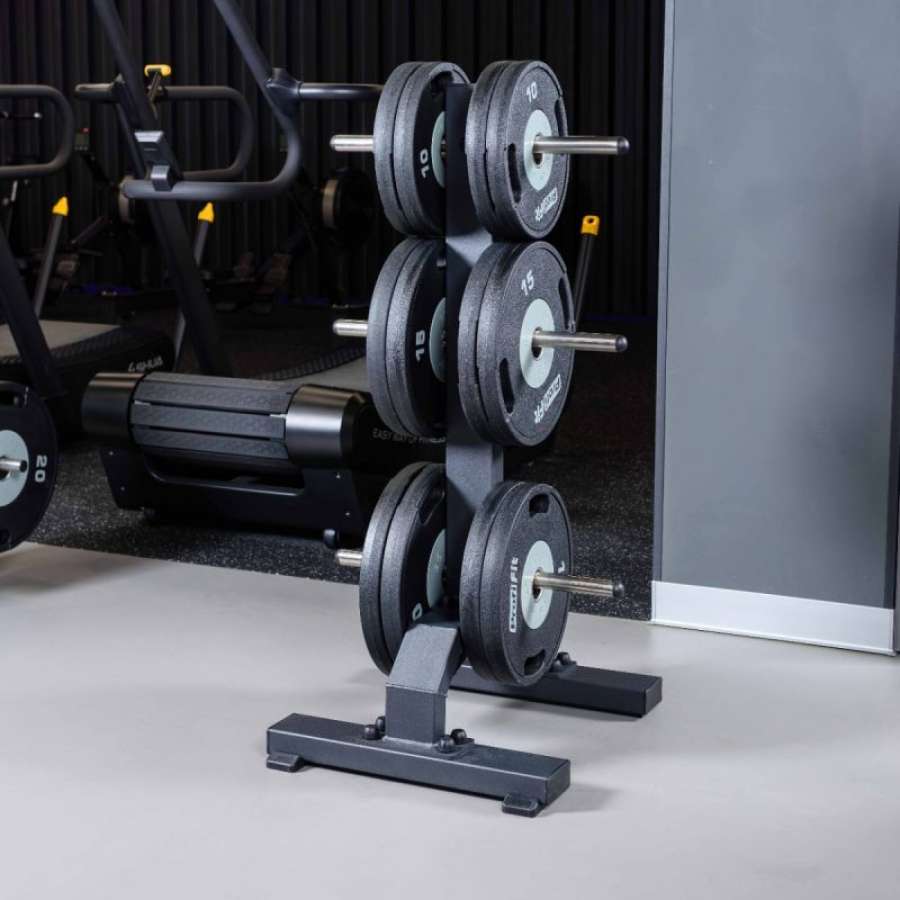 Позволяет поддерживать порядок в зоне силовых тренировок, экономит место, обеспечивает безопасность хранения свободных весов. Стойка оборудована универсальными накопителями для хранения дисков разного посадочного диаметра.