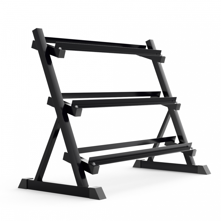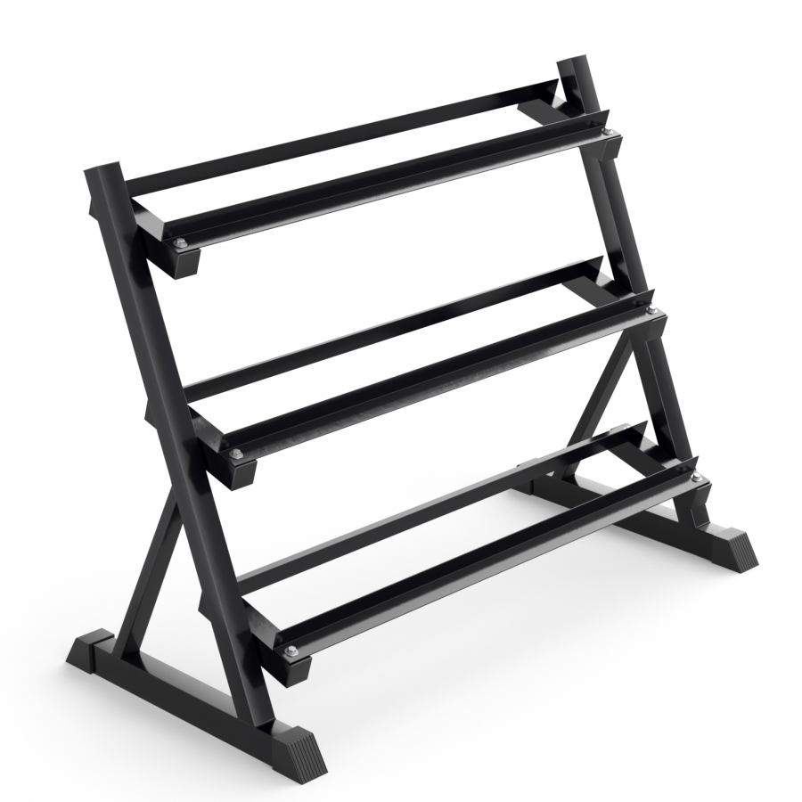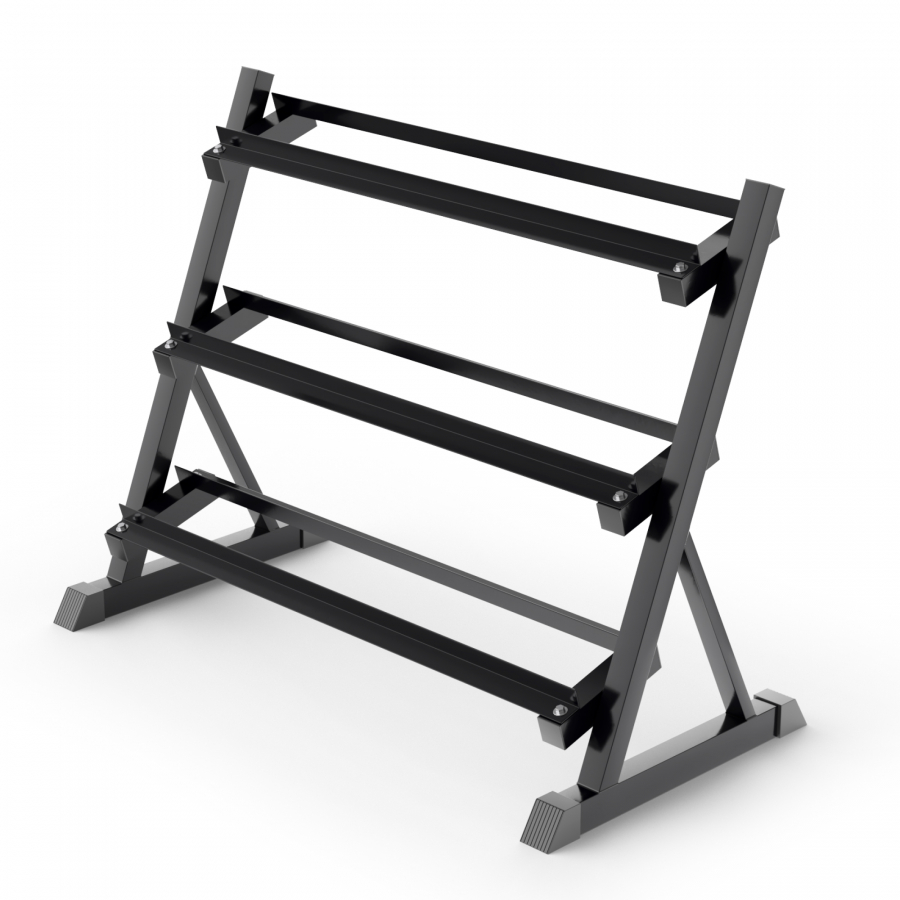 Подставка для гантелей изготовлена из особопрочной стали Q235, которая используется для производства деталей с большим уровнем нагрузки, например для строительства мостов и зданий. Такая конструкция с толщиной стали 1,2 мм обеспечивает надежное и безопасное хранение гантелей различного веса, защищая их от повреждений, сохраняя порядок в тренировочном пространстве. Трехрядная конструкция с противоскользящими ножками обеспечивает удобный доступ к гантелям во время тренировок. Ширина полки для гексагональных гантелей по внешним границам 22 см, по внутренним границам 11 см.