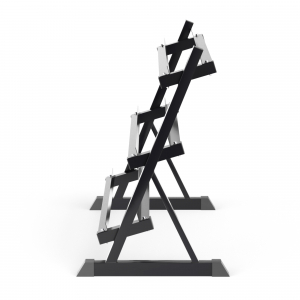 Стойка с размерами 133,3 х 56,5 х 87 см стойка идеально впишется в любой интерьер и поможет оптимизировать пространство в вашем доме или зале. Окраска распылением придает эстетический вид стойке для хранения спортивного инвентаря и не скалывается от соприкосновения с металлом гантелей.