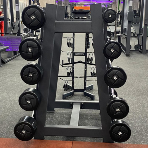 Стойка для штанг А3055 соответствует всем требованиям профессионального оборудования. Конструктивные элементы рамы изготовлены из высококачественной стали, покрыты износостойкой двухслойной полимерной краской. Толщина профиля 3 мм имеет большой радиус угла, что придает тренажеру более элегантный внешний вид. Резиновые подпятники обеспечивают устойчивость и предотвращают повреждение полового покрытия в помещении. Позволяет поддерживать порядок в зоне силовых тренировок, экономит место, обеспечивает безопасность хранения 10 фиксированных штанг.
