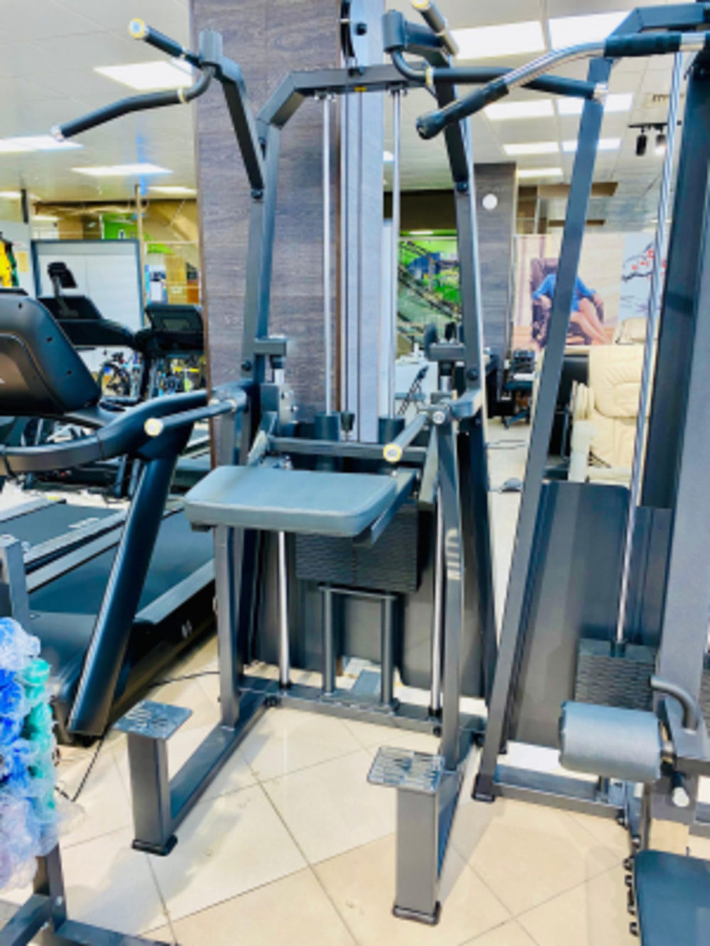 Этот многофункциональный тренажер предназначен для выполнения упражнений на мышцы спины, груди, рук и ягодиц. Данный тренажер за счет подвижной платформы с удобной подушкой позволяет снизить отягощение собственного тела при выполнении упражнений (подтягивания или обратные отжимания), тем самым делая выполнение сложного упражнения реально осуществимым, а что также позволяет выполнить большее число повторений. Турник на этом тренажере имеет несколько хватов, для нагрузки на различные группы мышц. Поручни (брусья) имеют регулировку по ширине, что позволят нагружать отдельные группы мышц при отжимании.