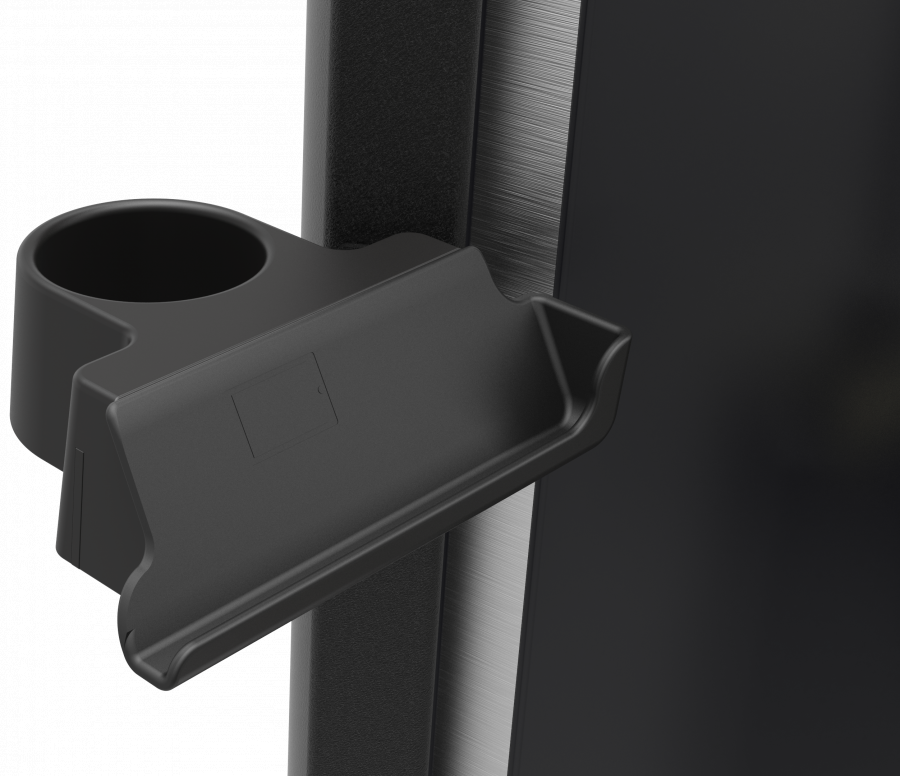 - Дизайн системы хранения аксессуаров полностью ориентирован на клиента, эргономичные ячейки для хранения бутылки и полочка для телефона или планшета находятся на расстоянии вытянутой руки.