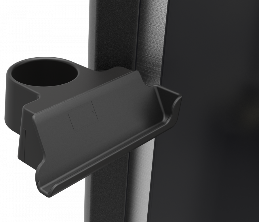- Дизайн системы хранения аксессуаров полностью ориентирован на клиента, эргономичные ячейки для хранения бутылки и полочка для телефона или планшета находятся на расстоянии вытянутой руки.