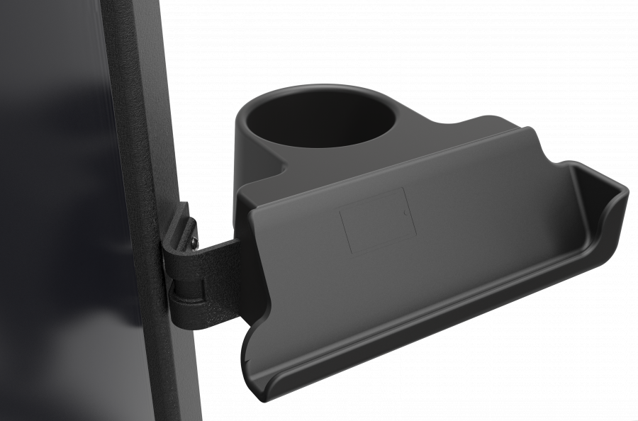 - Дизайн системы хранения аксессуаров полностью ориентирован на клиента, эргономичные ячейки для хранения бутылки и полочка для телефона или планшета находятся на расстоянии вытянутой руки.