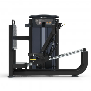 - Регулируемый угол наклона спинки и соединенные подплечники позволяют выполнять двойную тренировку: жим ногами сидя и приседания.