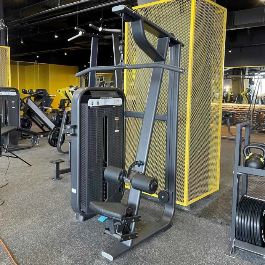 Тренажер Тяга сверху предназначен для упражнений на развитие мышц плечевого пояса. При выполнении упражнения в работу включаются широчайшие мышцы спины (крылья), дополнительную нагрузку получают ромбовидные, трапециевидные, дельтовидные мышцы и трицепсы, большие грудные мышцы. Для разнообразия тренировочного процесса прямую стандартную рукоять можно заменить на гибкую тягу или V-образную рукоятку.