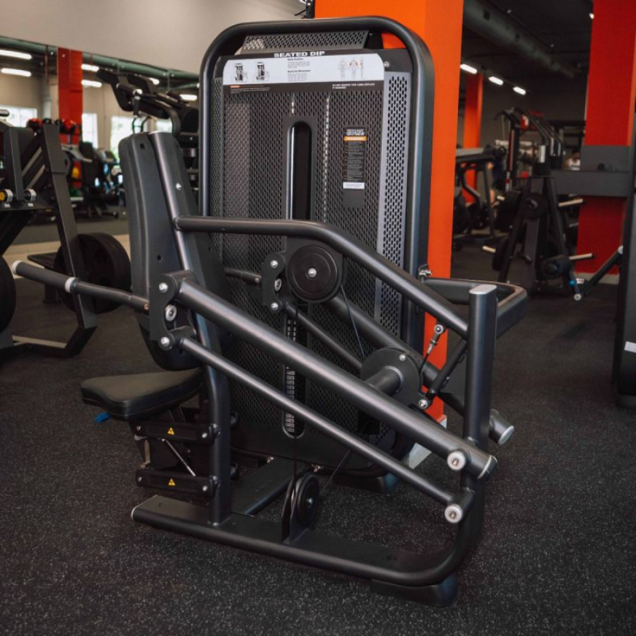 Тренажер Трицепс-машина имитирует технически сложное упражнение со свободным весом – французский жим или упражнение с собственным весом – отжимания на брусьях. При выполнении изолирующего упражнения на трицепсы по заданной траектории в тренажере в положении сидя, в работу включаются только целевые мышцы, при этом обеспечивается правильная техника и безопасность для локтевых суставов.