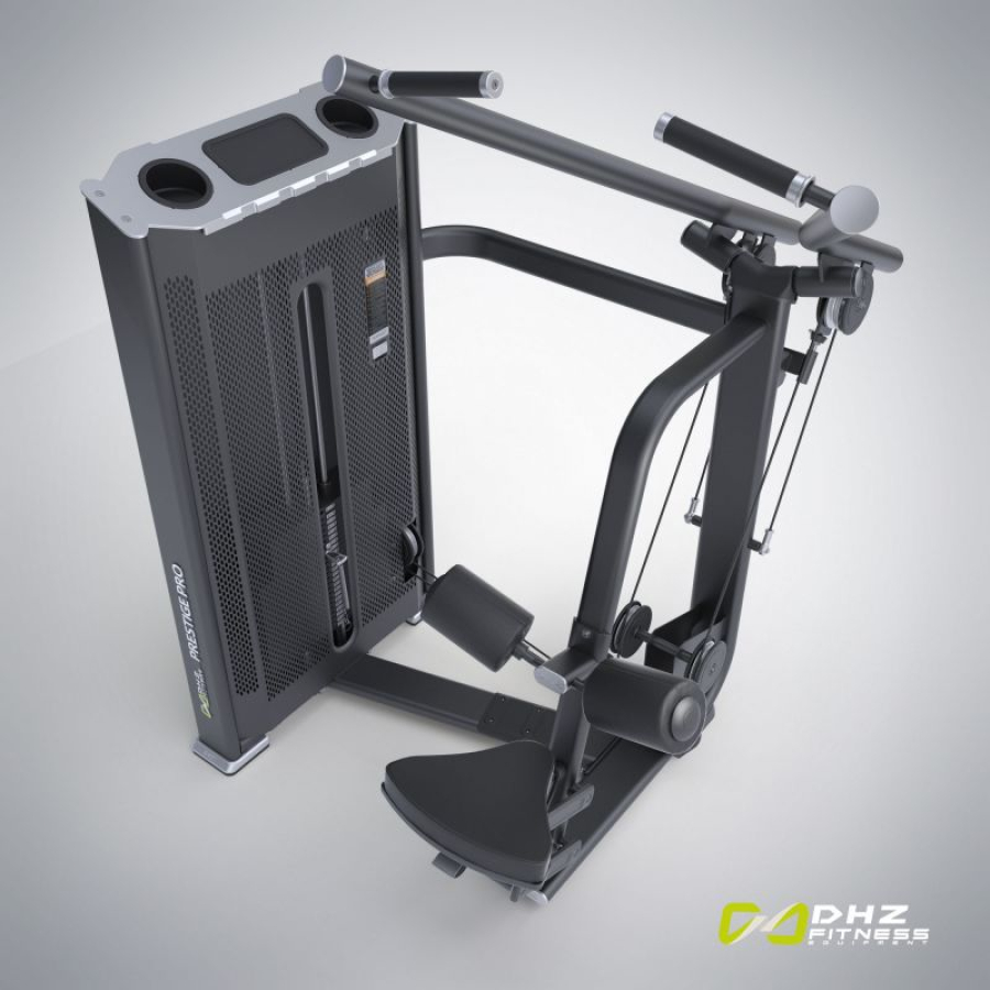 Современный и эргономичный тренажер для тренировки мышц плечевого пояса. Блок установлен таким образом, что спортсмену одинаково удобно выполнять движения как перед головой, так и за ней. Широкие взаимозаменяемые прорезиненный рукоятки обеспечивают возможность различных вариантов хвата. Регулировка положения подушки для бедер позволяет использовать тренажер пользователями с различным телосложением.