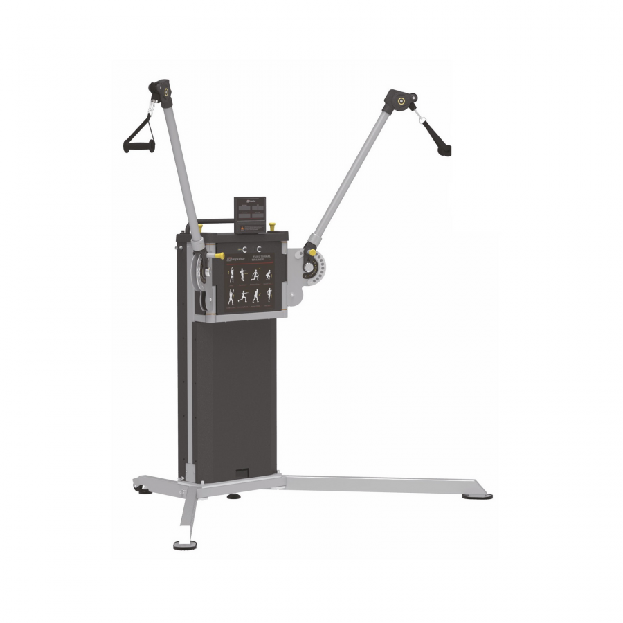 - Оснащён двумя тренировочными рычагами, которые вращаются на 180 градусов в двух плоскостях, на конце каждого - тросовое соединение, которое может вращаться на 360 градусов, обеспечивая комфорт силовых нагрузок и безграничные вариации траектории движения во время тренировочного процесса. А также это защищает трос от перекручивания и продлевает его срок службы.
