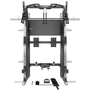 Сочетает в себе: машину Смита, кроссовер, стойки для приседаний и жимов, силовую раму, функциональный тренажер, турник и брусья. Есть возможность приобретиения дополнительных опций (жим ногами, силовые рычаги и др.).