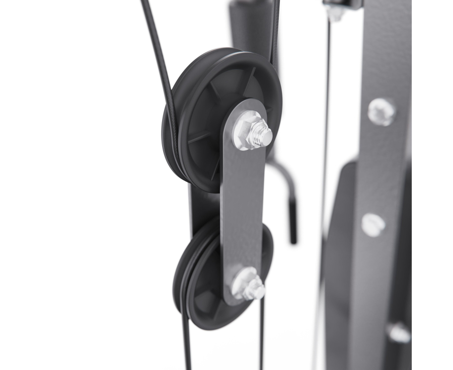 В конструкции предусмотрено 9 свободных блоков и 1 встроенный весовой блок весом 46 кг. Такая система позволяет гибко настраивать нагрузку под уровень подготовки пользователя — от начинающего до уверенного спортсмена. Силовой комплекс удобно использовать как для набора мышечной массы, так и для поддержания формы.