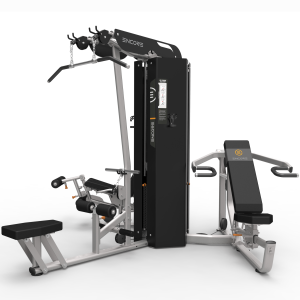 - 5 тренажеров в одном: тяга сверху, гребная тяга, сгибание и разгибание ног, многопозиционный жим от груди и плеч.