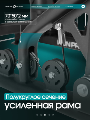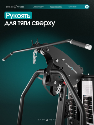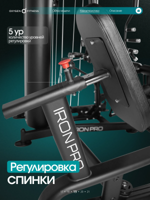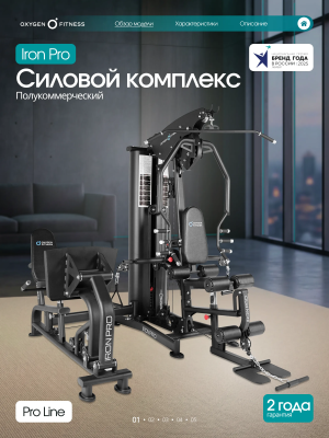 OXYGEN FITNESS IRON PRO — мощная многофункциональная силовая станция полукоммерческого уровня, разработанная для интенсивных тренировок и максимальной эффективности. Модель объединяет широкий спектр силовых упражнений и позволяет полноценно прорабатывать основные группы мышц: грудь, спину, плечи, руки и ноги. Благодаря расширенному функционалу и высокой надежности станция отлично подходит как для домашнего использования, так и для фитнес-студий, корпоративных залов и небольших спортивных клубов.