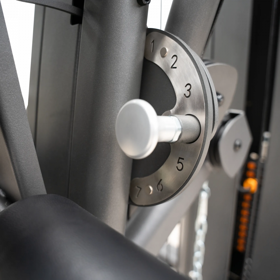 В комплект входят регулируемые по высоте элементы: тяга (кроссовер) — 7 уровней, спинка — 5 уровней, сиденье — 4 уровня, а также регулировка для жима от груди — 11 уровней.