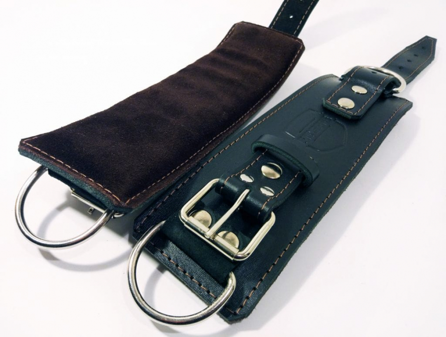 Изготовлены из натуральной кожи (той же, что используется для изготовления атлетических поясов). Внутри – мягкая подкладка: она повысит комфорт на тренировках. Крепление на ноге - не за счет липучки, как на большинстве аналогов, а за счет пряжки с кожаным ремешком, что повышает долговечность изделия. Также срок службы повышает усиление креплений полуколец копроном.