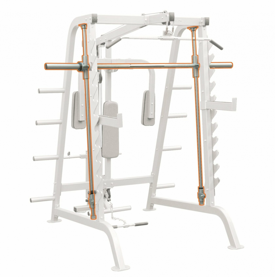 - «Смит машина» — это универсальная стойка для штанги, оборудованная направляющими. Таким образом, штанга ходит по строго заданной траектории, позволяя сосредоточиться на выполнении упражнений.