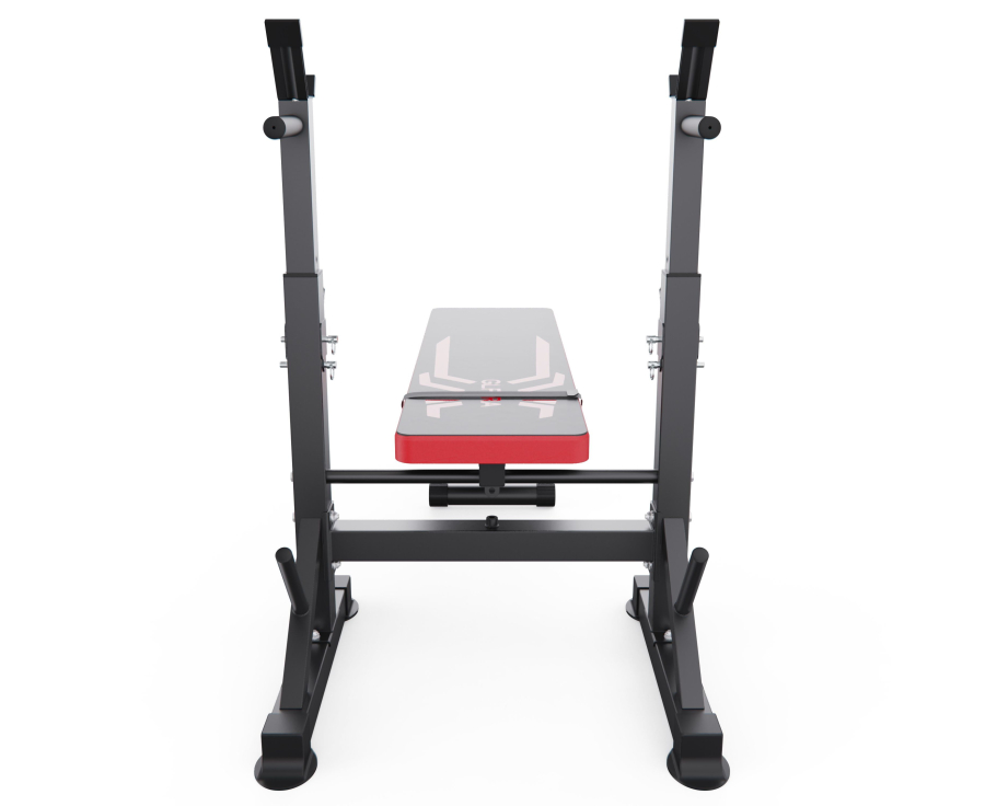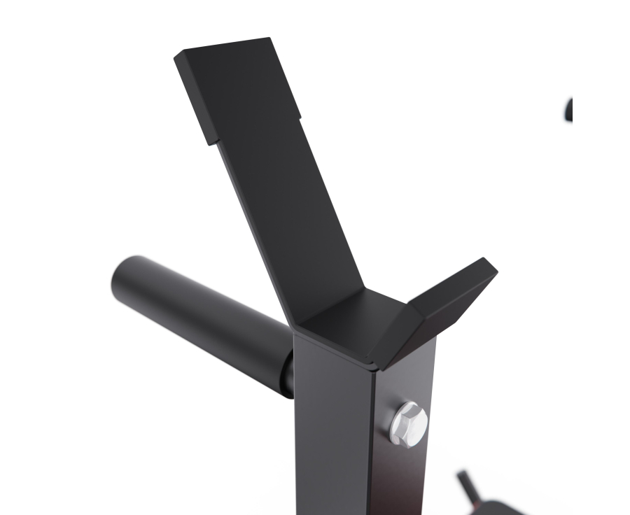 Модель оснащена стойками под штангу с регулировкой по высоте на 5 уровней, что позволяет легко адаптировать скамью под рост пользователя и различные упражнения. Регулировка спинки на 4 уровня расширяет функциональность тренажёра и даёт возможность изменять угол нагрузки.