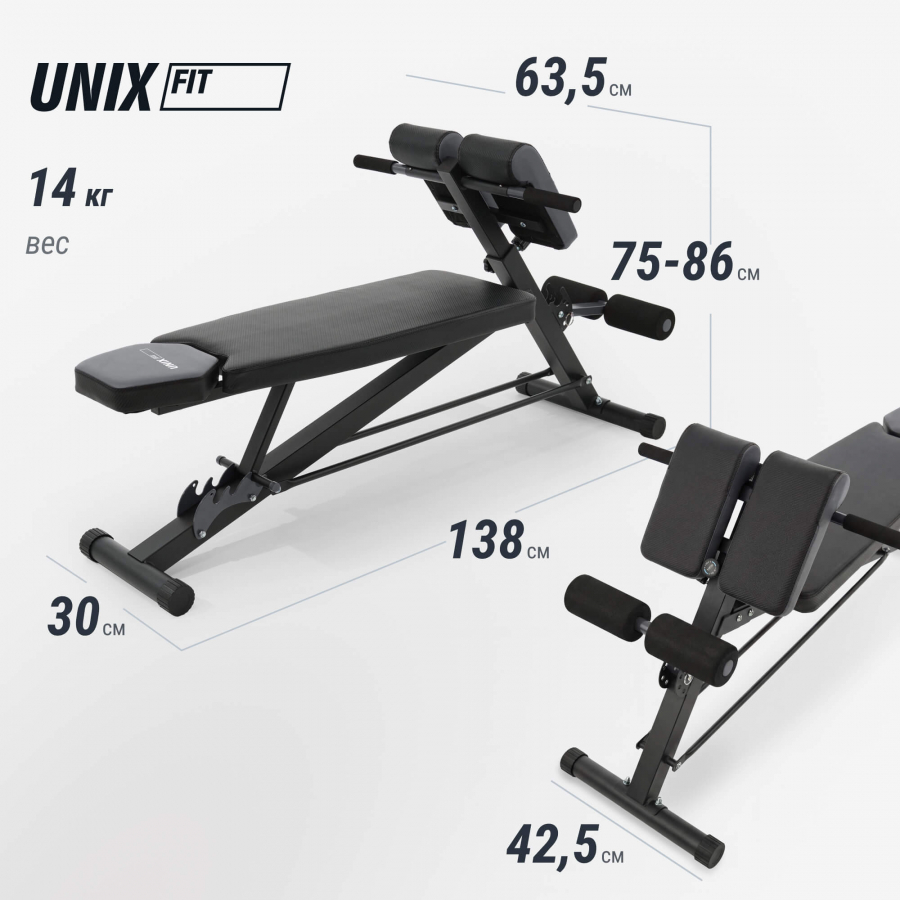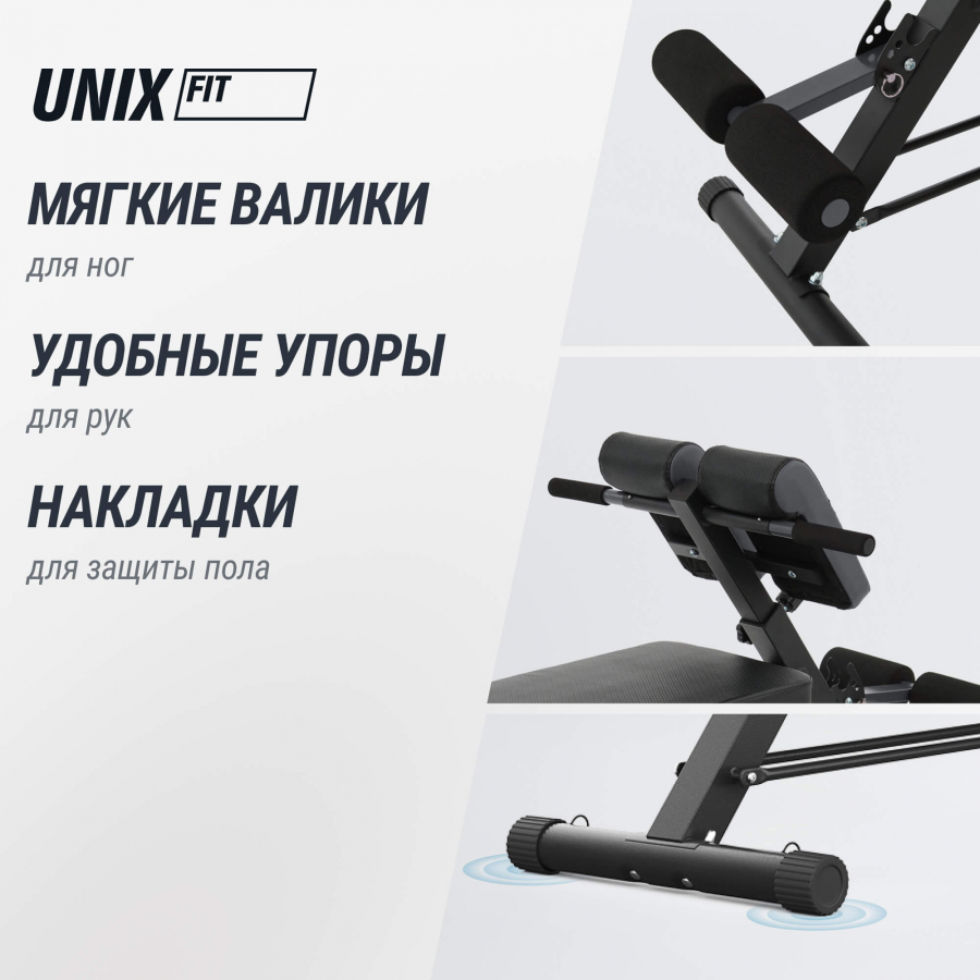 Скамья для пресса и жима лежа позволит проработать мышцы живота, спины, груди, ног и рук и разнообразить ваши тренировки. Тренируйтесь с удовольствием и с UNIX Fit!