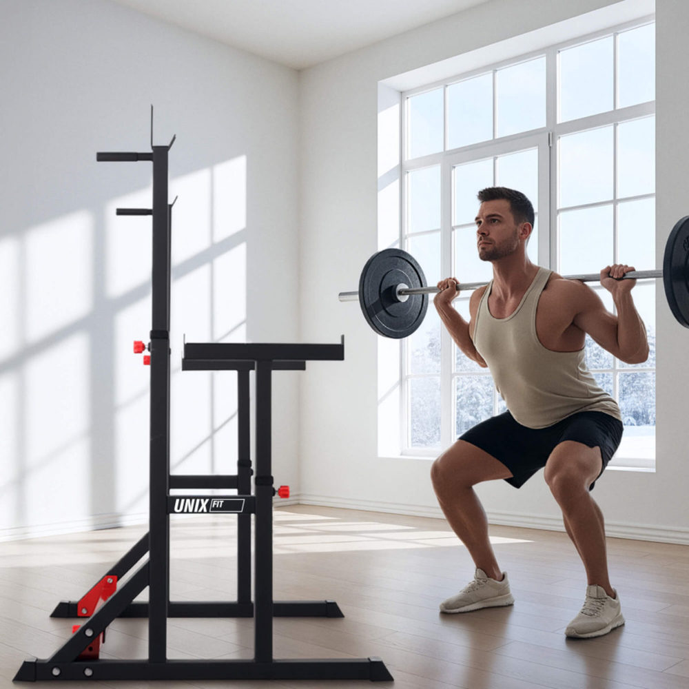 Силовые стойки UNIX Fit Frame 220 предназначены для выполнения различных упражнений со штангой весом до 220 кг: приседания, жим и другие.