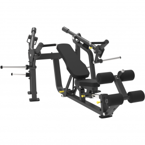 - Вместительный накопитель позволяет нагружать тренажер дисками до 150 кг на рычаг.