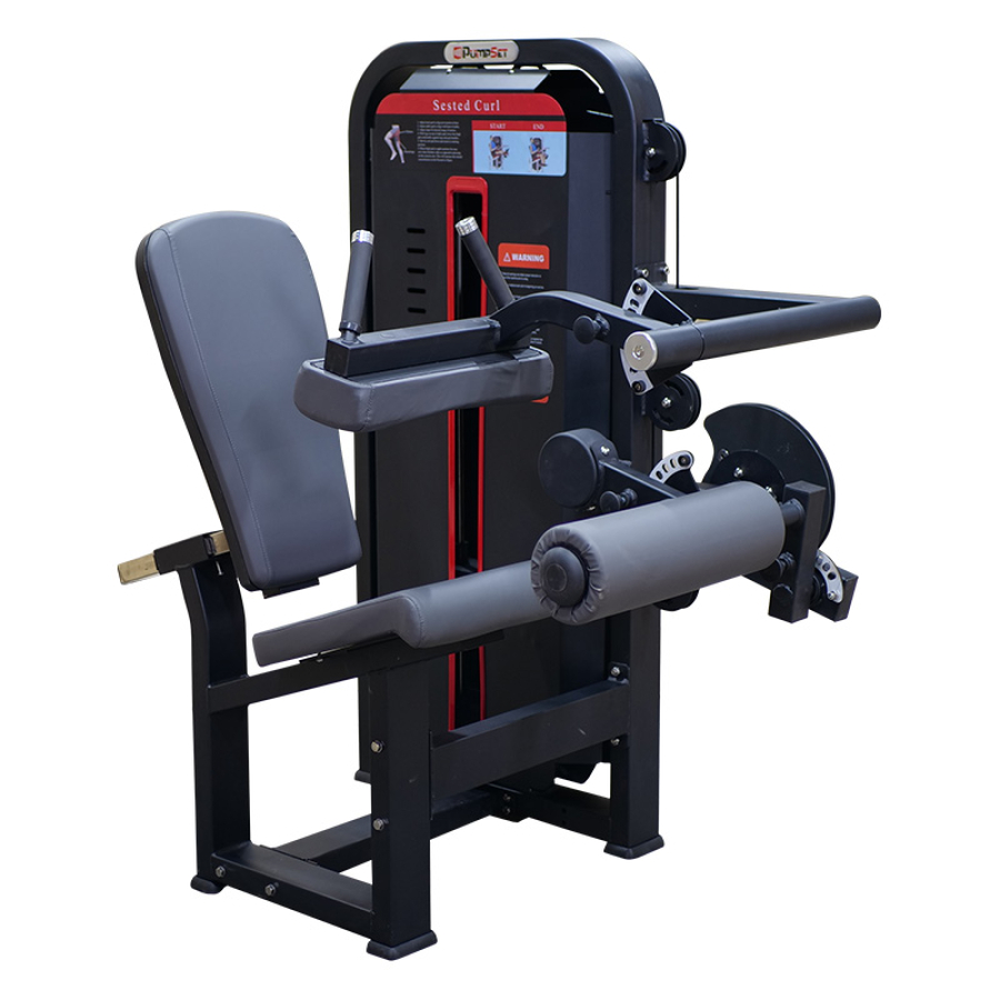 Блочный тренажер Сгибание ног сидя профессиональной серии Pumpset предназначен для укрепления бицепсов бедра. Для смены рабочего сопротивления достаточно переставить шток фиксации весовых плит.