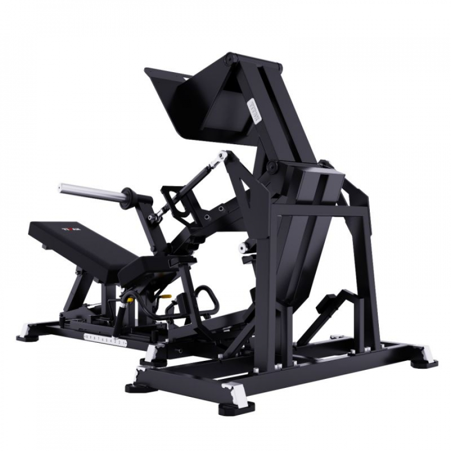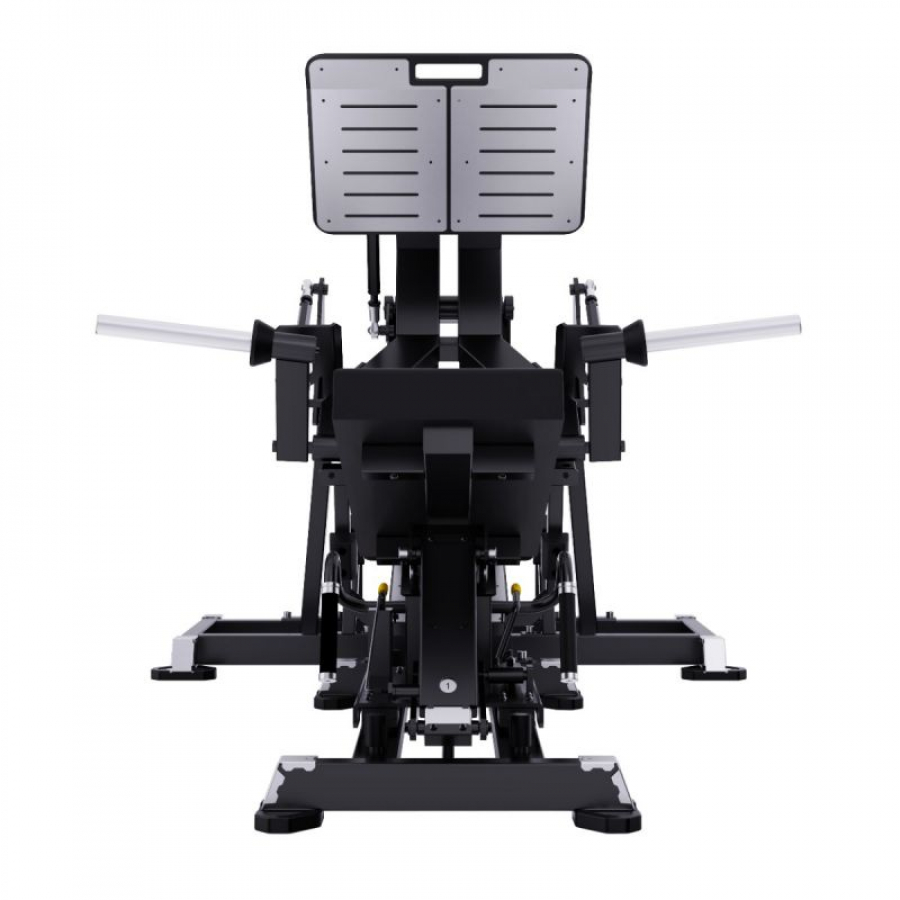 Тренажер Жим ногами предназначен для изолирующей проработки четырёхглавой мышцы бедра, ягодичных, приводящих и икроножных мышц. Конструкция обеспечивает безопасное выполнение упражнения без перегрузки позвоночника и коленных суставов. Широкая платформа позволяет менять постановку ног и варьировать акцент нагрузки. Положение спинки регулируется по углу наклона, а узел «сиденье–спинка» перемещается по горизонтали – всё настраивается из рабочего положения с помощью удобных рычагов. Конструктивные решения тренажера обеспечивают стабильное мышечное напряжение на всём протяжении амплитуды и плавное включение нагрузки без рывков.
