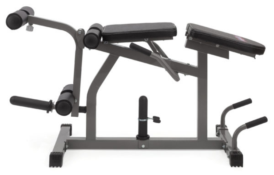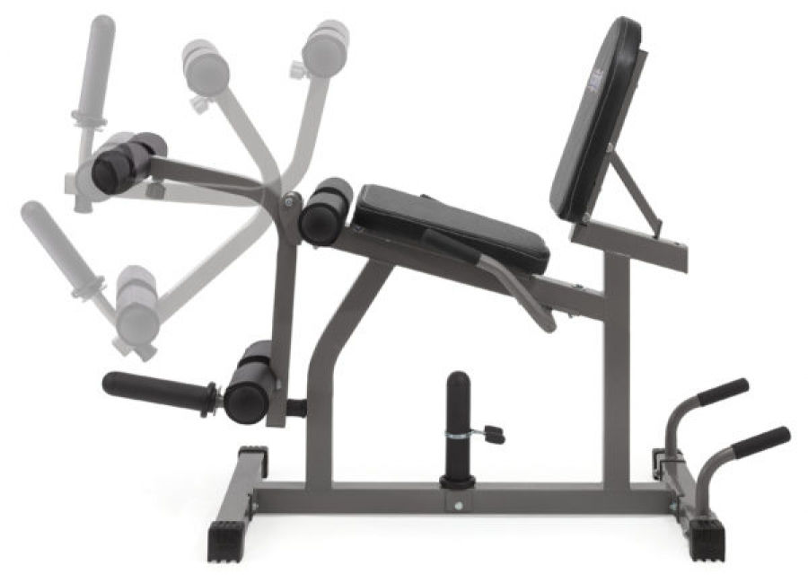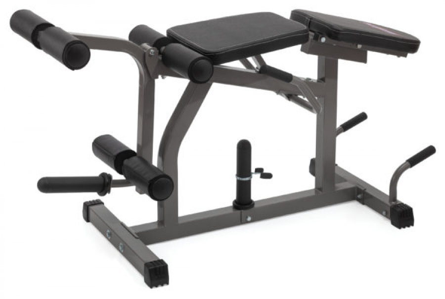 - Один тренажер эффективно заменяет два: для разгибания ног (проработка квадрицепса) и сгибания ног лежа (бицепс бедра и икры). Регулировка высоты валика гарантирует правильную и комфортную биомеханику движений.