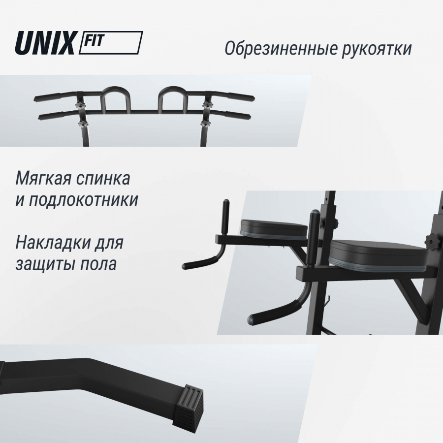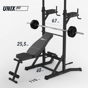Преимущества тренажера турник-пресс-брусья со скамьей UNIX Fit POWER TOWER 150P:
