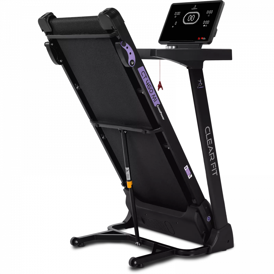 Беговая дорожка для дома Clear Fit серия CrossPower модель CT 460 MI. Оптимальный выбор для комфортных домашних тренировок бегом и ходьбой: просторное полотно 450 х 1200 мм, 3 уровня угла наклона, мощный двигатель и качественная амортизация. Надежный, бесшумный двигатель беговых дорожек серии CrossPower развивает скорость в диапазоне от 0.8 км/ч до 14 км/ч, плавное изменение и стабильное движение на всех оборотах. Прочная дека и усиленная конструкция рассчитаны для пользователей до 140 кг. Двойная система амортизации по периметру от ударной нагрузки для суставов и позвоночника обеспечивает комфортные безопасные ходьбу и бег, современная система амортизации подходит для любого возраста.