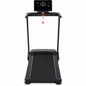 Складная конструкция облегчает процесс перемещения и хранения тренажера. Газовый доводчик обеспечивает плавное и мягкое опускание бегового полотна, безопасно, легко и бесшумно.