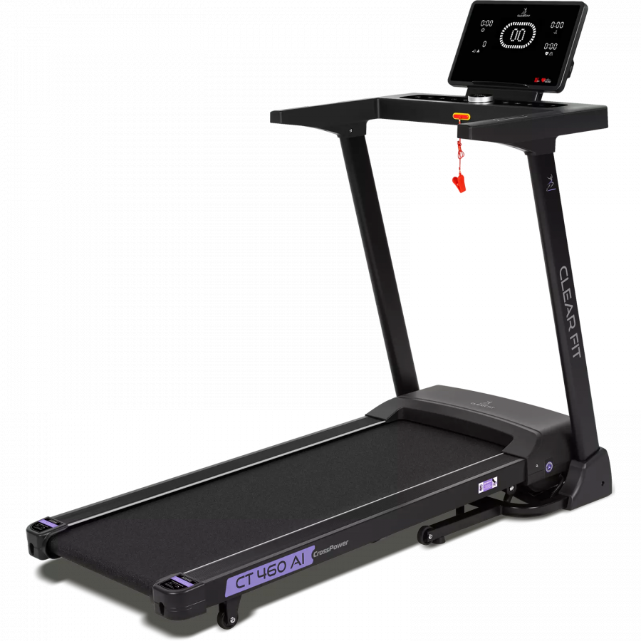 Беговая дорожка для дома Clear Fit серия CrossPower модель CT 460 AI. Оптимальный выбор для комфортных домашних тренировок бегом и ходьбой: просторное полотно 450 х 1200 мм, электрическое изменение угла наклона 15 уровней, мощный двигатель и качественная амортизация. Надежный, бесшумный двигатель беговых дорожек серии CrossPower развивает скорость в диапазоне от 0.8 км/ч до 14 км/ч, плавное изменение и стабильное движение на всех оборотах. Прочная дека и усиленная конструкция рассчитаны для пользователей до 140 кг. Двойная система амортизации по периметру от ударной нагрузки для суставов и позвоночника обеспечивает комфортные безопасные ходьбу и бег, современная система амортизации подходит для любого возраста.