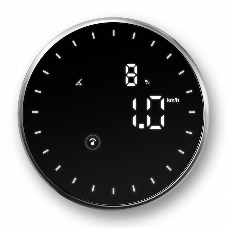 Консоль отличается простой инновационной системой управления, вариатор управления – шайба позволяет легко регулировать настройки во время тренировки, большие удобные клавиши эргономично расположены в зоне доступа, 2 рабочих дисплея, большой современный экран с качественным отображением крупными символами и нижний экран вариатора управления. Большой легкочитаемый дисплей отображает основные параметры тренировки: программа, время тренировки, скорость, угол наклона, дистанция, калории, пульс, оценка состояния организма, основные параметры дублируются на втором экране. Лаконичное управление облегчает настройку программ, контроль и проведение тренировок. Оптимальный пакет программ повышает эффективность тренировок, помогает сохранить мотивацию и интерес к занятиям. На поручнях расположены сенсорные датчики пульса, на нижней панели клавиши «быстрого выбора», вариатор управления для скорости, паузы, таким образом, Вы легко и быстро можете изменять настройки программы, наклон и скорость во время движения. Программный пакет 23 тренировки, включая пульсозависимые, для похудения, целевые, для выносливости и восстановления сердечно-сосудистой системы.