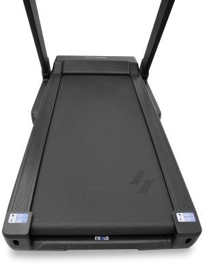 Система амортизации с 8 динамическими эластомерами снижает нагрузку на суставы. Полотно толщиной 2,5 мм с текстурой Golf обеспечивает износостойкость и отличное сцепление. Полуавтоматическая система смазки упрощает обслуживание. Удобство эксплуатации Беспроводная зарядка, USB-порт, держатель для бутылки, транспортировочные ролики и складная конструкция с газлифтами делают модель практичной в ежедневном использовании. Размер: 202,5 × 93 × 151,5 см Вес: 136 кг