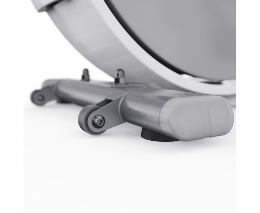 Для устойчивости тренажёр оснащён компенсаторами неровности пола, благодаря которым он надёжно стоит даже на неидеальной поверхности. Встроенные транспортировочные ролики позволяют легко переместить тренажёр с места на место, что особенно удобно при использовании в ограниченном пространстве.