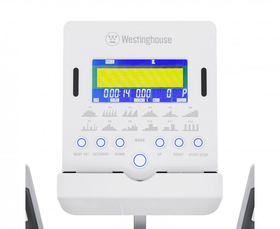Все данные отображаются на LCD-дисплее, где вы можете отслеживать ключевые параметры: время, дистанция, калории, пульс, мощность, скорость и темп. Для удобного отслеживания за состоянием организма во время тренировки на поручнях установлены сенсорные датчики пульса. Так же в дисплей встроено 12 программ + ручной, целевой, пользовательский режим, восстановления пульса и оценка ИМТ.
