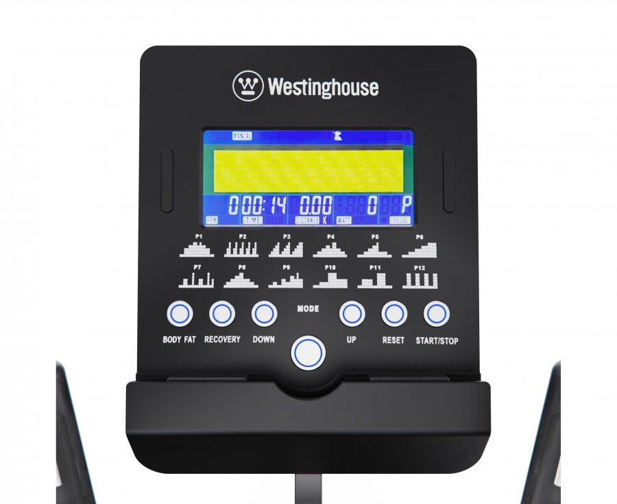 Все данные отображаются на LCD-дисплее, где вы можете отслеживать ключевые параметры: время, дистанция, калории, пульс, мощность, скорость и темп. Для удобного отслеживания за состоянием организма во время тренировки на поручнях установлены сенсорные датчики пульса. Так же в дисплей встроено 12 программ + ручной, целевой, пользовательский режим, восстановления пульса и оценка ИМТ.