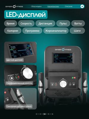 OXYGEN FITNESS SONOMA — сбалансированный эллиптический тренажёр для дома, который объединяет комфортную биомеханику, современные технологии и функциональность, необходимую для эффективных и разнообразных кардиотренировок.