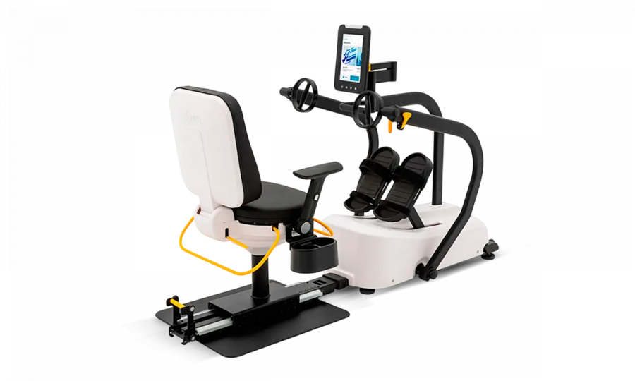 Саморегулируемая длина хода педалей адаптируется к уникальному диапазону движений пользователя, обеспечивая щадящие нагрузки, которые минимально воздействуют на суставы нижних конечностей. Всё это обеспечивается при сохранении безопасной полулежачей позы. Модель оснащена съемным сиденьем для занятий пользователей на кресле-коляске.