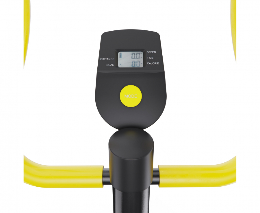 Велотренажер имеет монохромный LCD-дисплеей, который отображает ключевые параметры тренировки: время, калории, дистанцию, скорость и сканирование. Это позволит отслеживать прогресс и корректировать нагрузку в реальном времени. Для работы консоли используются батарейки типа АА (1.5 В) — простое и удобное решение, не требующее подключения к сети. Батарейки в комплект не входят.