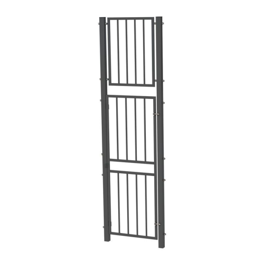- Конструкция включает входной проём с калиткой, обеспечивающей удобный доступ на площадку.