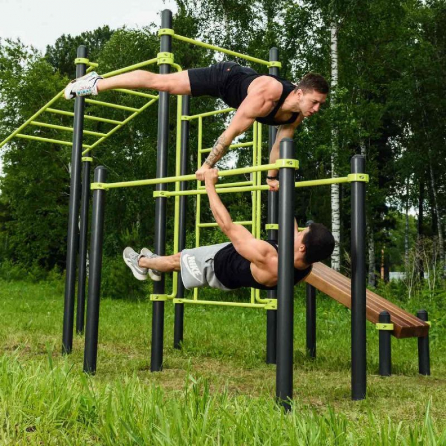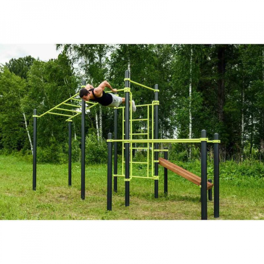 W237 Воркаут (рукоход, швед. стенка, 2 переклад., переклад. верт., накл. скамья, брусья)