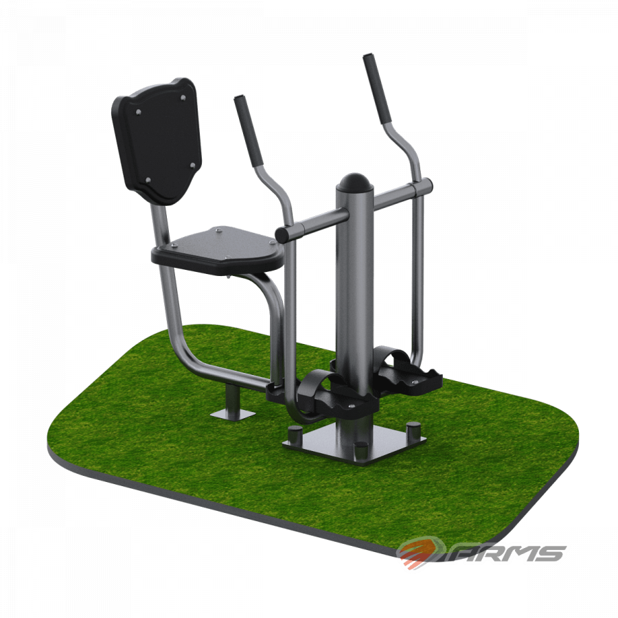 - Принимая положение сидя фиксируете ноги в ногоступах, а руками держитесь за рукояти и плавными движениями выполняете упражнение «лыжи».