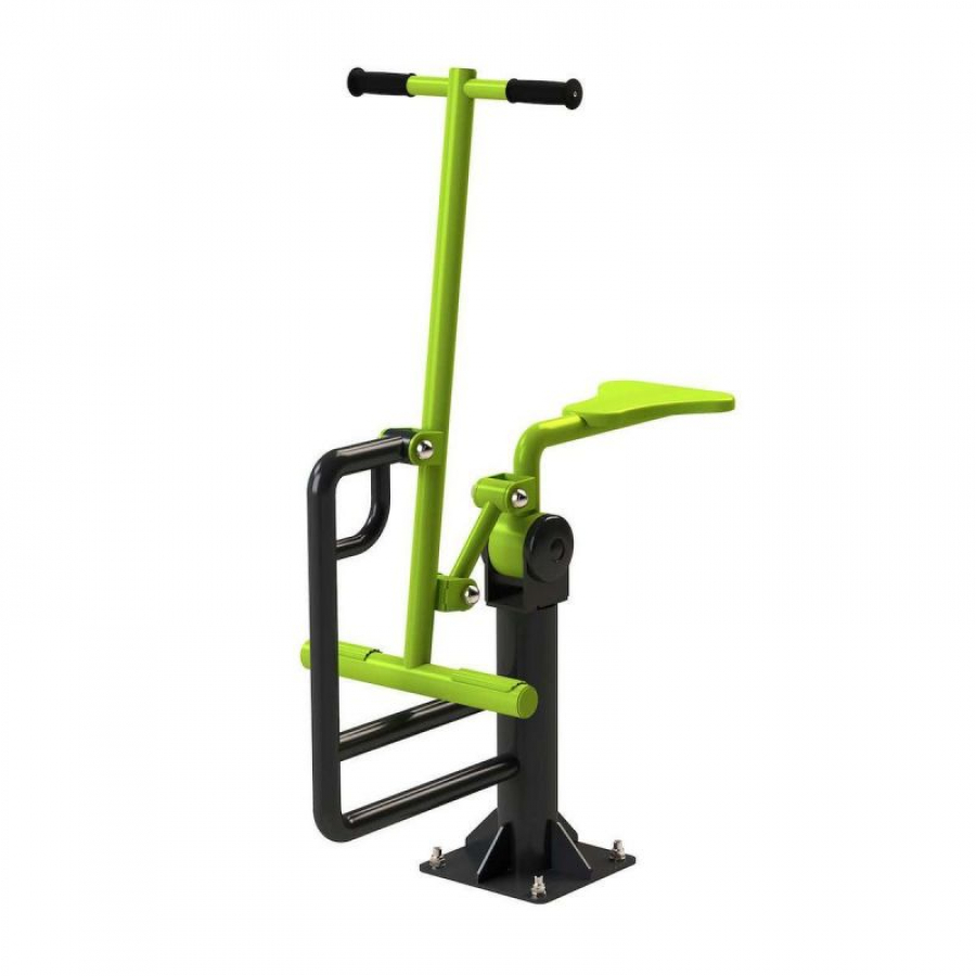 Тренажер активизирует мышцы ног, ягодиц и корпуса за счёт движений вверх-вниз с переносом веса. Упражнение развивает координацию и общую физическую выносливость, помогает улучшить подвижность тазобедренных и коленных суставов. Подходит для пользователей любого уровня подготовки и может использоваться как элемент разминки или кардионагрузки.